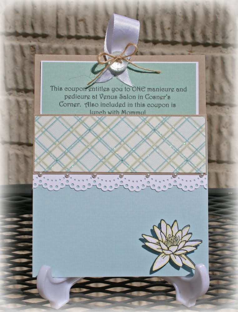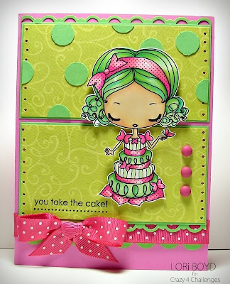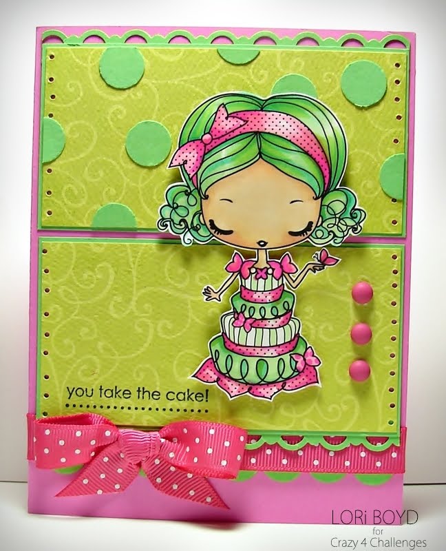 The winner of last week's challenge is ....... Gini Cagle. Congrats, Gina!!! Please contact Vicki Garrett at vickig@kos.net so that she can let you know how to claim your prize which was donated by Paper Romance.We are doing a different challenge this week. The CRAZY girls have made cards this week using WHATEVER they wanted!!! There were no rules for us.........but for you....there are rules!! LOL!! Your challenge is to choose one of the CRAZY girls cards posted here today and CASE it! That's easy huh?!? You can CASE the layout, theme, colors or the whole card!!! Whatever works for you!
