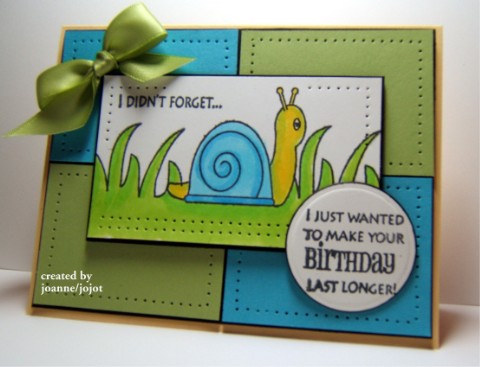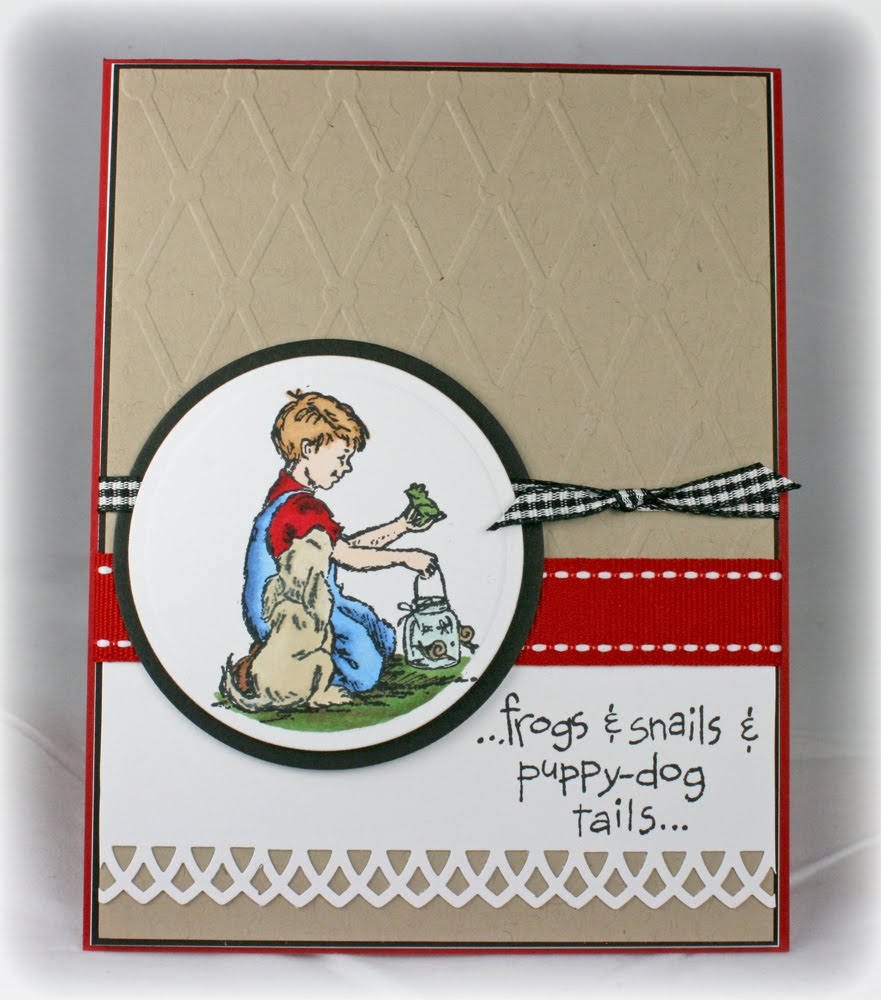 So the challenge is to use this part of that well known children's nursery rhyme to create your card ..... it can be a boy card, something with frogs and/or snails, puppy dogs ... I think there is plenty of scope there for everyone. Have fun!