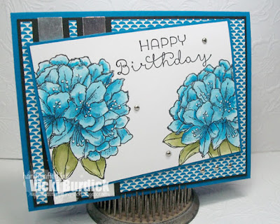 The team was challenged to Show me the Blue! September's birthstone is sapphire so make blue the most prominent color of your card.